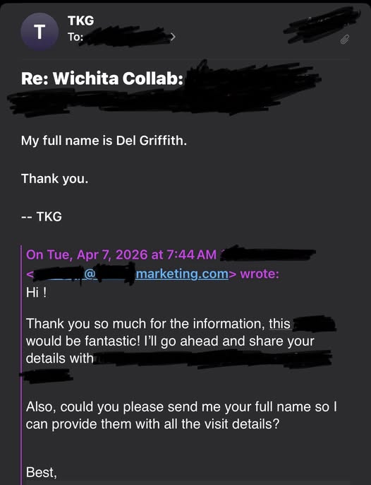 April 11, 2026 “Good morning! I am with the Winfield chamber, and we are looking for an influencer to work