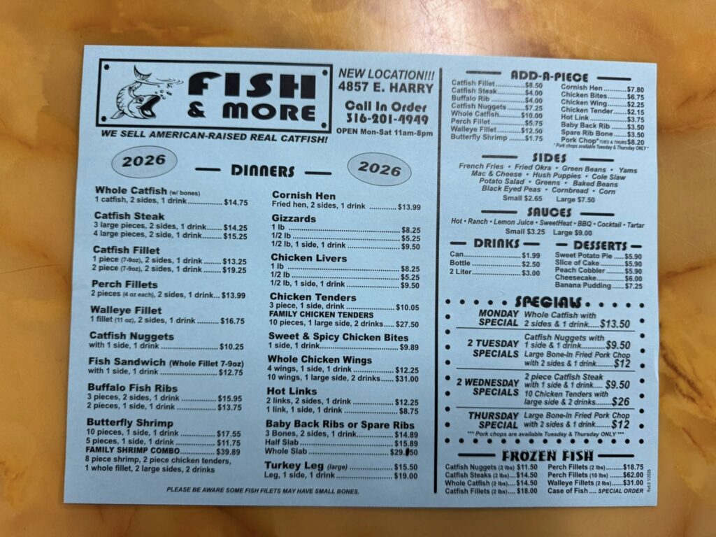 Make sure to support these small restaurants that give your city the charm and character that it has. Fish and More is located at 4857 E. Harry, just east of the QuickTrip at Harry & Oliver.