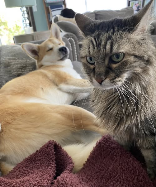 I snagged some photos of Remus (rescued from Kansas K-9 ResQ) cuddling with his sister Hope (rescued from Kansas Humane Society), with his brother Gryff (rescued from underneath a car-hood), with his sister Odette (rescued from Save the Kitties) and his sister Tigger. Roo, his other kitty sister, doesn’t like to be photographed. Lol she is a mess.