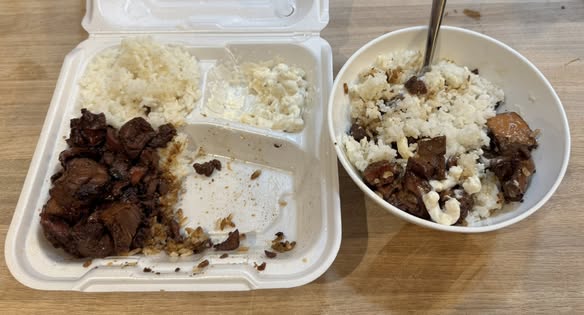 Taste-wise, I thought the marinade on the chicken went well with the rice, which had the right amount of sticky. I do enjoy the mac salad (a/k/a cold mac & cheese) here as well.