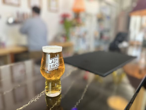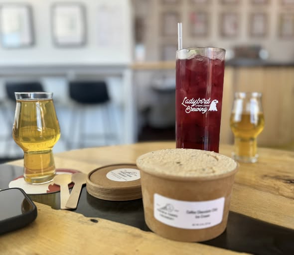 Anyway, on to the beer. I ordered a couple different beverages. I liked the Chill Pill IPA a lot! And it was cool that they did this “neighbor collab” with this local Asian grocery store. The beer was a “sticky rice Lager,” and I believe the “neighbor” provided the sticky rice, but I could be wrong. How neat of Ladybird to do a collab like that. I just love it.