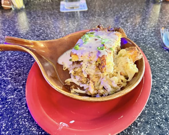I thought the service was on point as well as the food. Hell, even the atmosphere. It kind of reminded me of the regard that folks in Wichita have for Doh Dah Diner. Regardless, it was an all around perfect experience. And that Breakfast Casserole was awesome. Hashbrowns with sausage, bacon and eggs baked with cheese on top, with a cheese sauce on top. OMG.